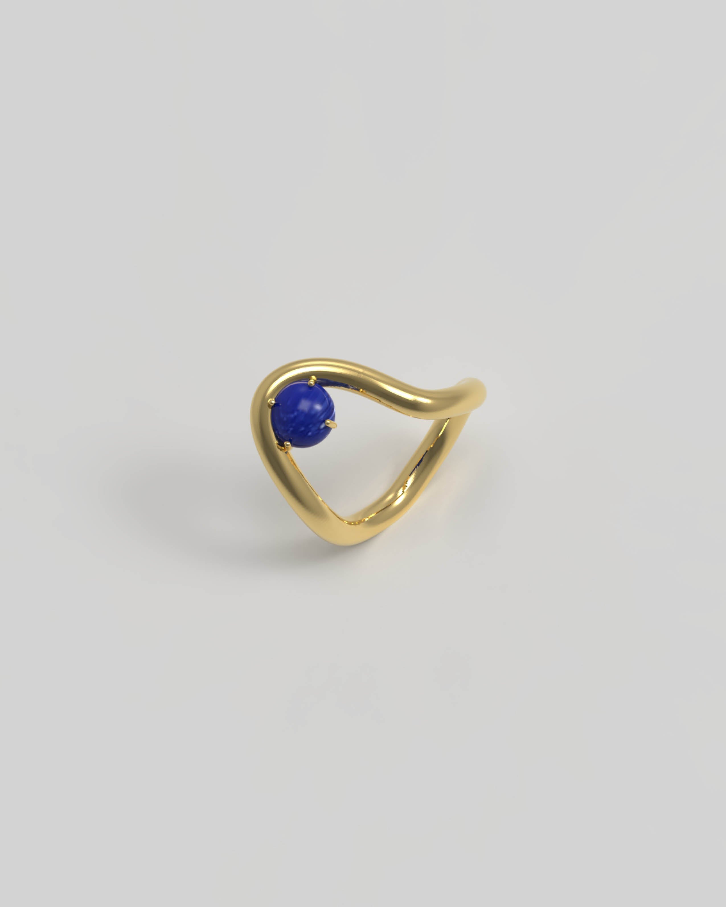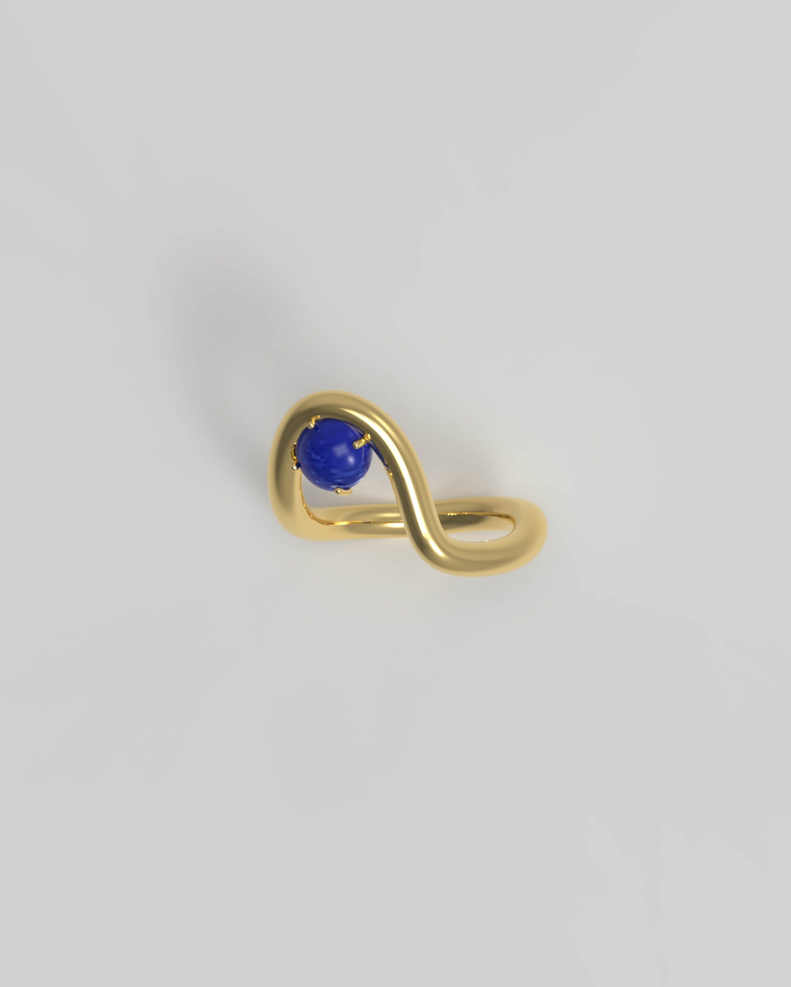 This ring holds the natural gemstone Lapis Lazuli, known for its deep blue hue speckled with golden pyrite. It symbolizes wisdom, truth, and inner peace.